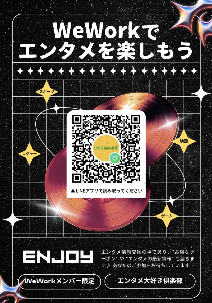 「エンタメ&レジャー」は「FAN」の要素を持ち、数字や成果だけでは語り尽くすことが難しく、人の感情や共感を動かすことに真の価値がある分野だともいえます。WeWork Japan は今後も、楽しい要素を持ち合わせたユニークな存在である「エンタメ&レジャー」を、ビジネスに偏らず、ビジネスの枠を超え、共に楽しみ、未来を語り、交流を通じて次につながる価値を創造するイベントを提供し、共創のストーリーを繋いでまいります。