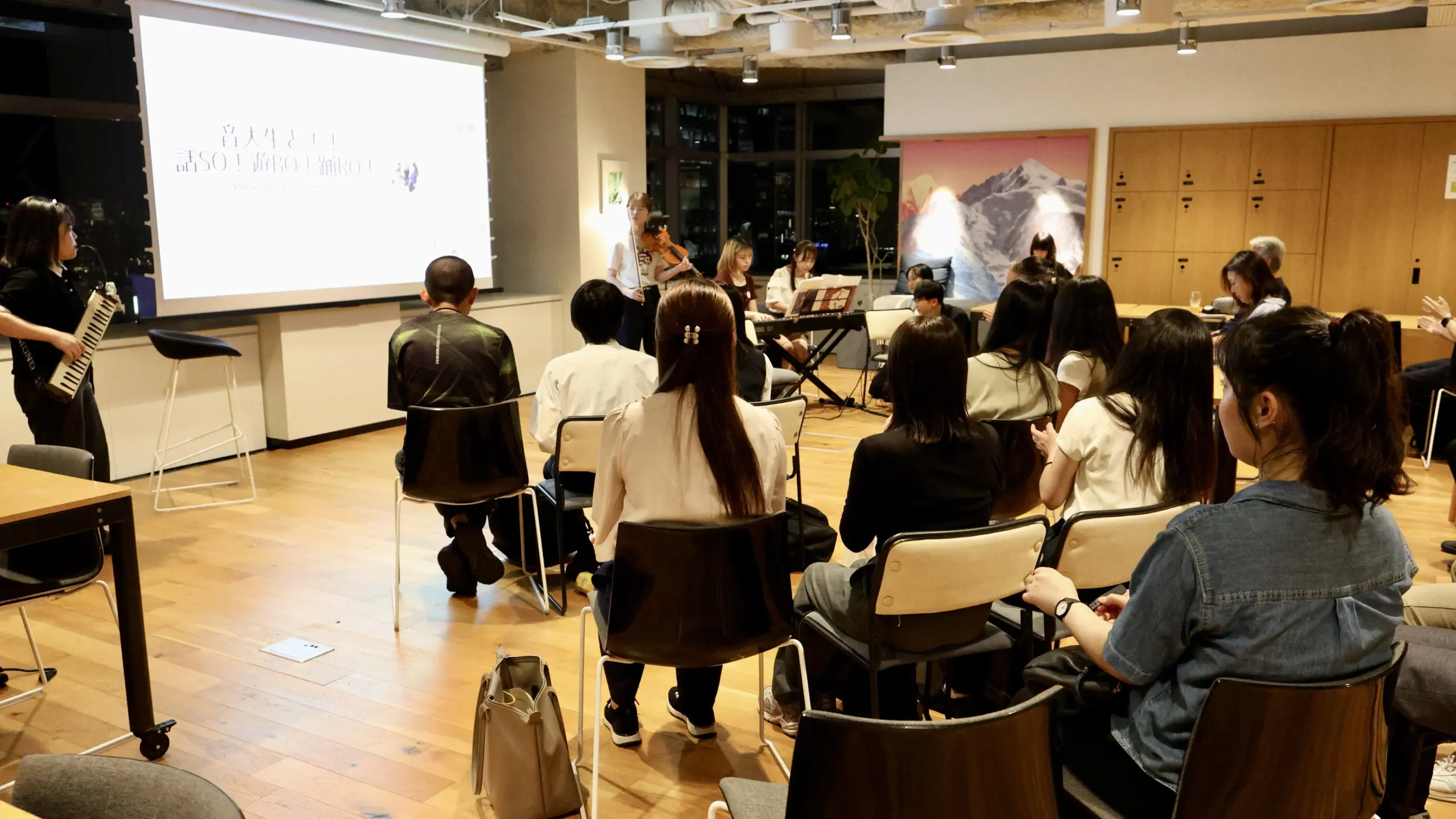 9月25日、WeWork メトロポリタンプラザビルにて、WSAを務める東京音楽大学1年生5名によるコミュニケーション型演奏会「話SO!遊BO!踊RO! 」を開催しました。