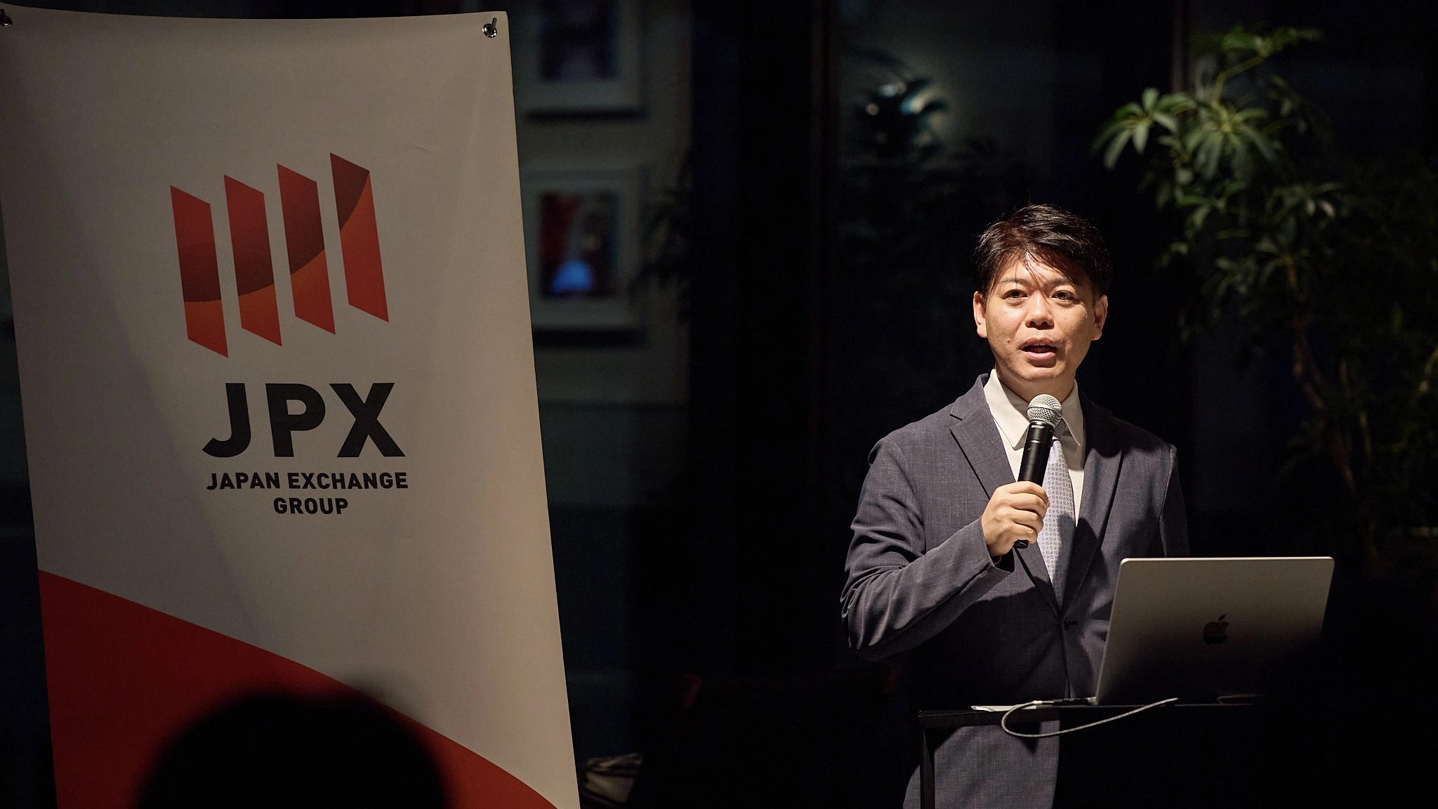 まずは、WeWork Japan 代表取締役社長 兼 CEO 熊谷慶太郎 よりご挨拶をさせて頂き、続いて株式会社JPX総研 執行役員 山藤 敦史 氏 よりキーノートを、JPX総研 三村氏より、ライブデモンストレーションとして、実際の検索動作を操作しながら解説頂きました。