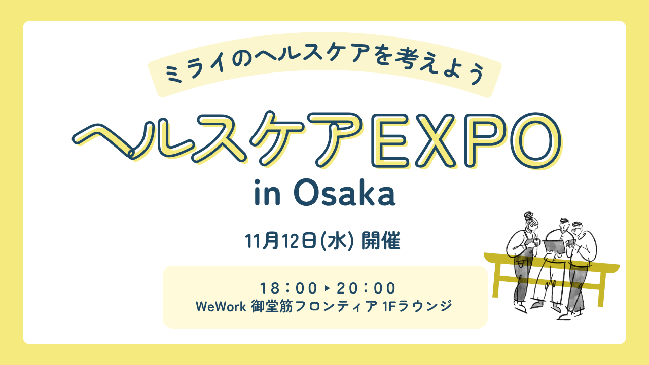 ■ 概要 未来のヘルスケアを見て・聞いて・体験できるEXPOイベント! どなた様も気軽にお楽しみいただけます。 どうぞお誘い合わせの上WeWork ヘルスケアプロジェクトによる関西初の展示会にぜひ足をお運びください! ■ 体験コンテンツ抜粋 ※イベント内容は一部変更になる可能性があります。 ・無印良品の養生茶ワークショップ ・VRで認知症予防を体験! ・微生物タンパクを食べてみる! ・最新のヘルスケア技術に触れてみる! ほか ■ パネルディスカッションテーマ テーマ1 ヘルスケア業界の最新トレンドと課題 テーマ2 テクノロジーの活用 テーマ3 地域医療の課題解決とアプローチ テーマ4 健康寿命延伸のための新たな取り組み ■ こんな方におすすめ ・ヘルスケアの現状・未来に関心のある方 ・新しいヘルスケアの選択肢を実際に見て触れてみたい方 ・ヘルスケア関連事業をされている方 ・別業種から新たにヘルスケア事業に取り組みたいと考えている企業・自治体の方々 など、幅広い方にお楽しみいただけるコンテンツをご用意します。 ■ 企業一覧 ・登壇:株式会社NEWRECT/NPO法人あなたのいばしょ/株式会社IDDK/京都府/株式会社わかさ生活 ・出展:ヤヱガキ醗酵技研株式会社/株式会社良品計画/象印マホービン株式会社/株式会社IDDK/Wow-Food株式会社/LELO HK LIMITEDほか ■ 主催:WeWork ヘルスケアプロジェクトチーム 2025 ■ 場所:WeWork 御堂筋フロンティア 1階 共用ラウンジ ■ 使用言語:日本語