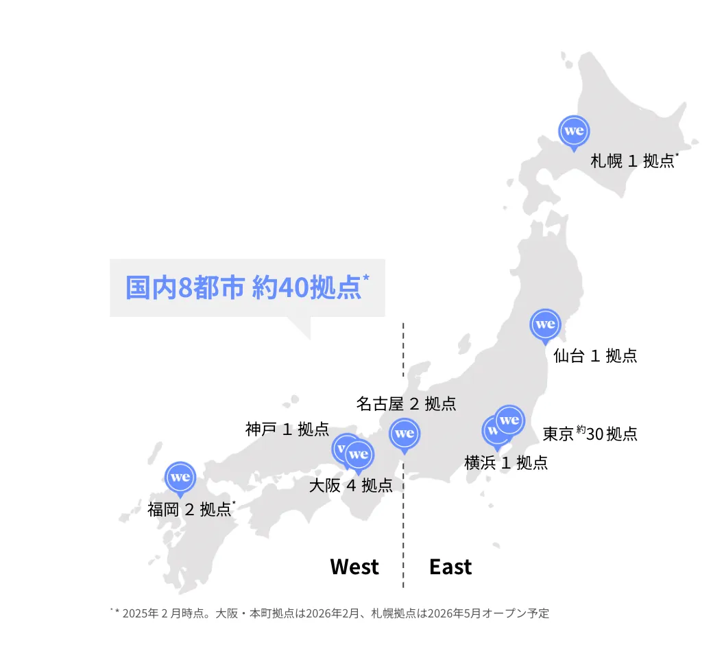 日本国内では8都市約40拠点を展開(オープン予定も含む)。
